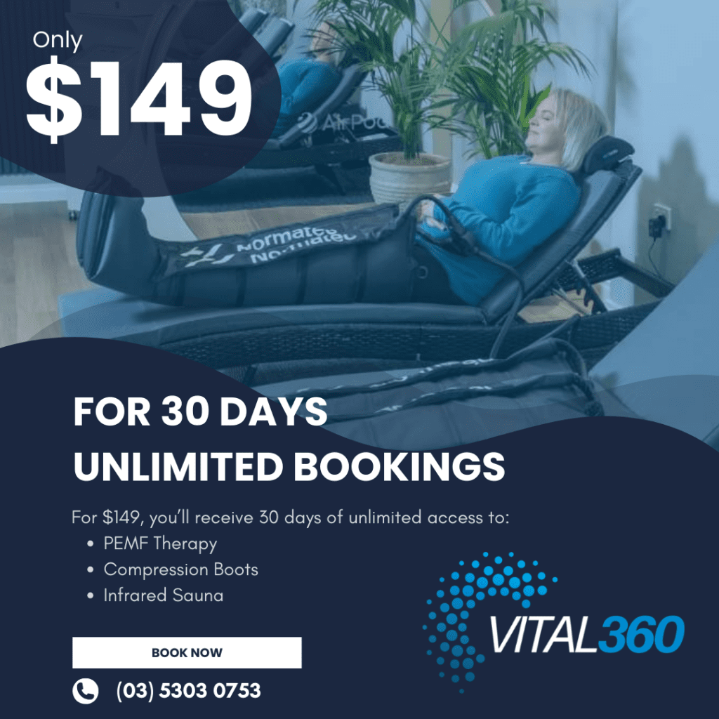 “I’m in my late 50’s and after suffering with pain in my lower back and sciatica, and a few sleepless nights, I attended Vital360 Ballarat. After the first PEMF session I had the best night sleep and massive reduction in pain. After the second, continued pain reduction and more range of motion plus continued better quality sleep. I look forward to ongoing visits.” — Tracey Atkins, Ballarat